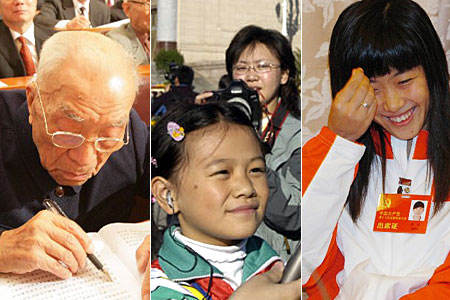 年齡最大的代表——方強;年齡最小代表——女子佩劍運動員譚雪;年齡最小的記者——吳梓曼。
