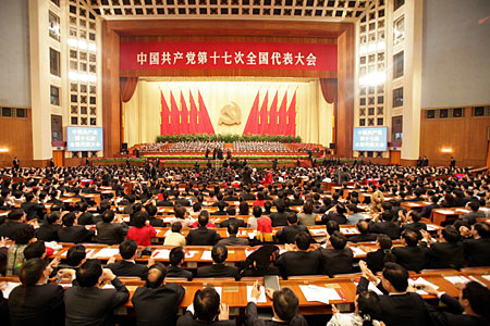 10月21日九時,中國共產黨第十七次全國代表大會閉幕會開始在北京人民大會堂舉行。