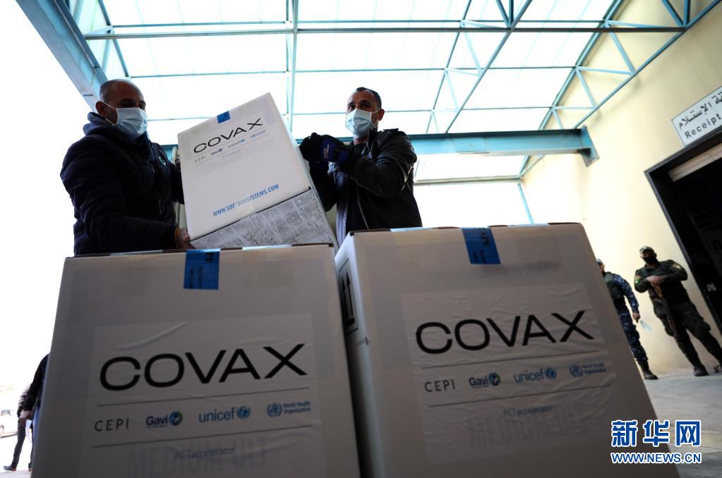 3月17日,在約旦河西岸城市納布盧斯附近的薩利姆鎮(zhèn),巴勒斯坦工作人員搬運通過世界衛(wèi)生組織主導(dǎo)的“新冠肺炎疫苗實施計劃(COVAX)”收到的新冠疫苗。新華社發(fā)(艾曼·諾巴尼攝)