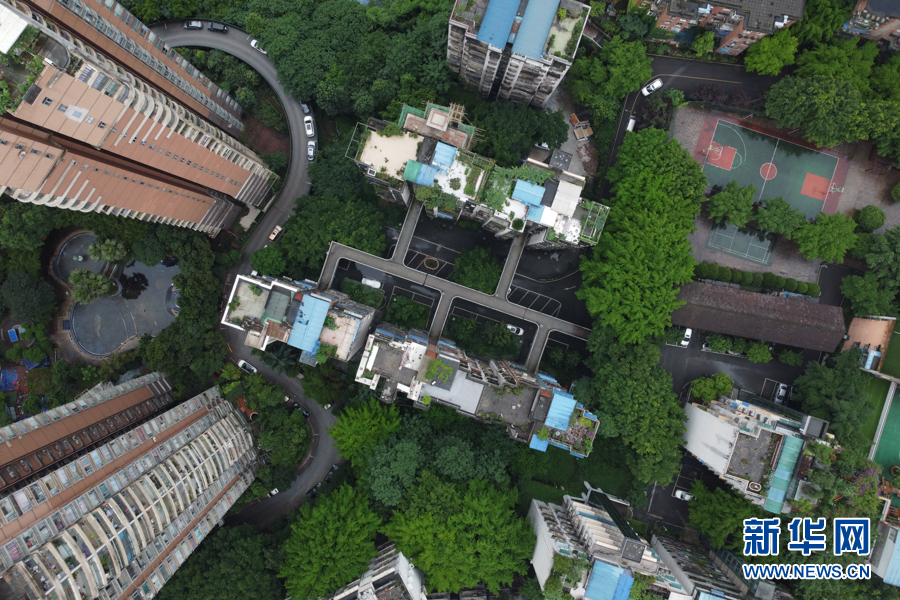 據(jù)了解,該小區(qū)位于重慶市渝中區(qū)長江二路。通過這個(gè)空中走廊,居民可以直接走到和天橋齊平的街道上去。新華網(wǎng) 耿駿宇 攝