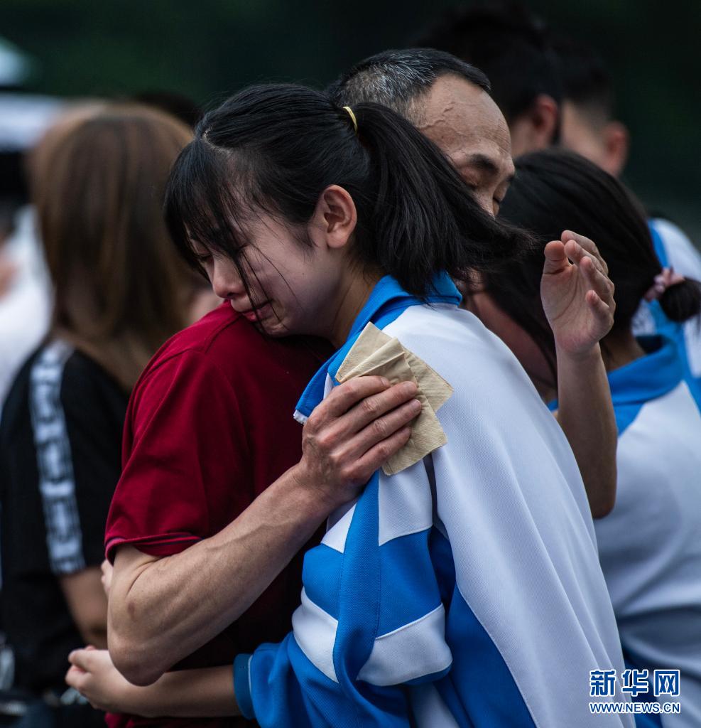 6月9日,烏當中學高三學生和家長在成人儀式上擁抱。