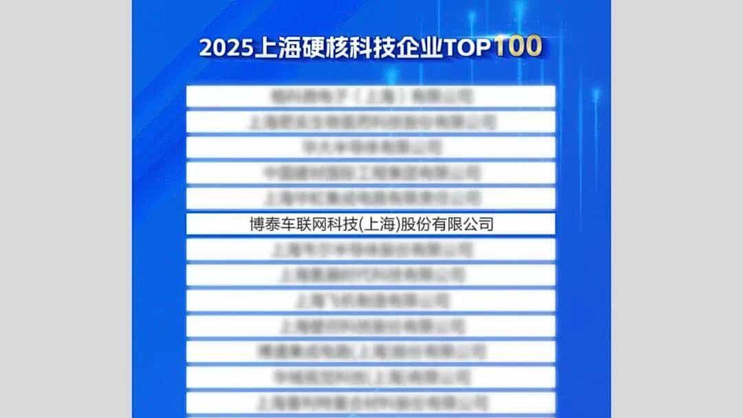 此次三度入选“上海硬核科技企业TOP100”,对博泰技术创新能力与行业贡献的持续认可。