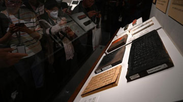 10月31日,季双俊(右)和季资美(中)在陶瓷文化学者蔡剑青的家中欣赏古瓷片。