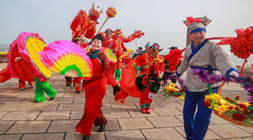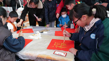 2月5日,人们在西湖迎春花展上观看表演(无人机照片)。