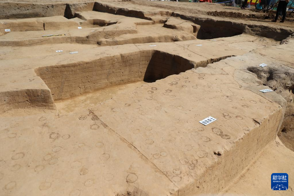 这是郑州商都书院街墓地中发现的版筑夯土遗存(2022年9月7日摄)。
