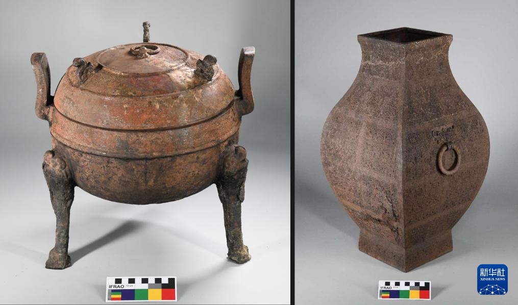 这是安徽淮南武王墩主墓内出土的部分青铜器。