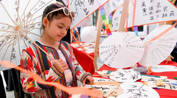 4月21日,小游客在常州焦溪古镇休闲游玩。