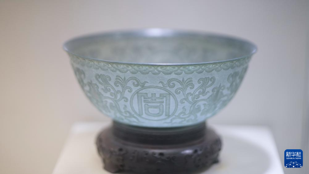 张铁成工作室内展示的玉雕作品(6月15日摄)。