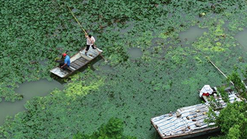 在位于江西省景德镇市善窑厂的车间里,匠人将有瑕疵的汝瓷产品敲碎(8月28日摄)。
