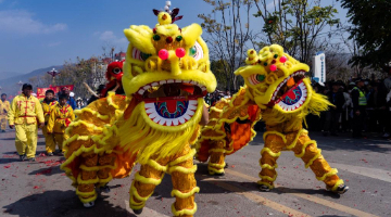 当日是农历正月十三,浙江省金华市金东区赤松镇虎岩村村民肩扛由100余节板凳组成的传统五彩龙灯,沿村道蜿蜒游舞。板凳龙的龙头被彩灯包裹,装饰有花卉、祥云等图案,在烛光摇曳间营造出“龙腾盛世”的年俗画卷。每年元宵节前后,浙江省金华市金东区赤松镇的各村村民都会舞起板凳龙灯,祈求来年风调雨顺、五谷丰登。