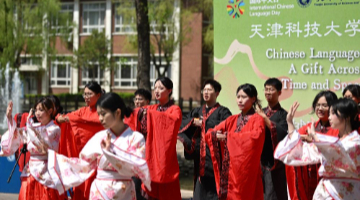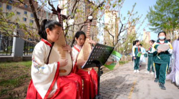 3月22日,福建芳华越剧院演员在福州西湖公园表演越剧《红楼梦》。
