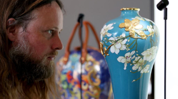 5月18日,游客在天津机床工业博物馆参观机床展品。