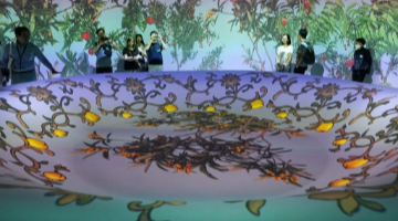 5月18日,游客在天津机床工业博物馆体验互动机床设备。