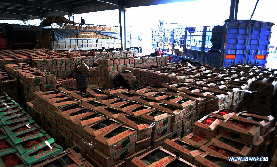 Fruits to be exported to ASEAN countries are distributed at a border supervision center in Pingxiang City of south China's Guangxi Zhuang Autonomous Region, Jan. 16, 2018. By making full use of its geographical location and the potential of coastlines and border areas, Guangxi capitalized on its advantages and played a bigger role in the Belt and Road Initiative. Through ports and the Beibu Gulf EconomicZone, the trade cooperation between Guangxi and ASEAN countries gained great prospects. (Xinhua/Zhang Ailin)
