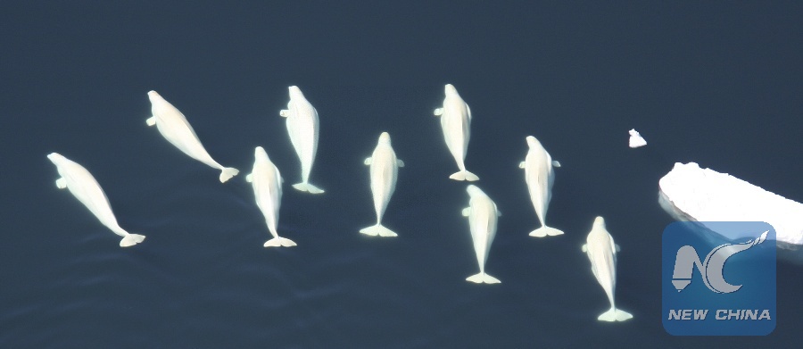 File Photo: Beluga whales are shown in the Chukchi Sea near Alaska in this July 1, 2008 photo from the National Oceanic and Atmospheric Administration National Marine Mammal Laboratory. The NOAA said it has determined that belugas in Cook Inlet, the channel that flows from the Anchorage area to the Gulf of Alaska, are at risk of extinction and deserving of strict protections under the Endangered Species Act. (Xinhua/REUTERS)