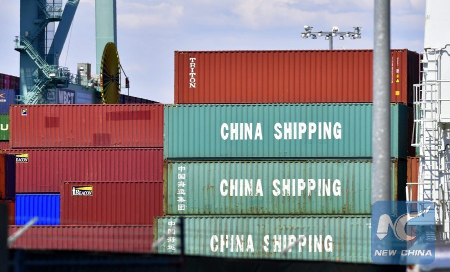 In this file photo taken on July 6, 2018 Containers are stacked on a vessel at the Port of Long Beach in Long Beach, California, including some from China Shipping, a conglomerate under the direct administration of China's State Council. (Xinhua/AFP)