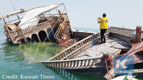 Centuries-old sunken wooden ship salvaged by divers from Kuwait Bay