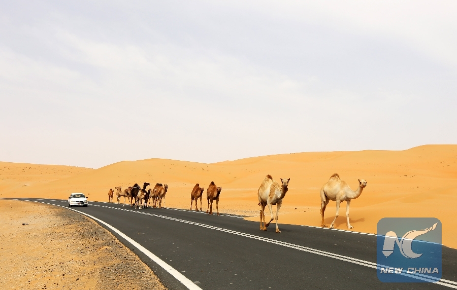 Photo taken on May 6, 2016 shows the view of Liwa desert, some 240 kilometers southeast of Abu Dhabi, United Arab Emirates (UAE). The UAE, located at the intersection of the Belt and Road Initiative, is an important partner for China to promote the Belt and Road Initiative. (Xinhua/Li Zhen)