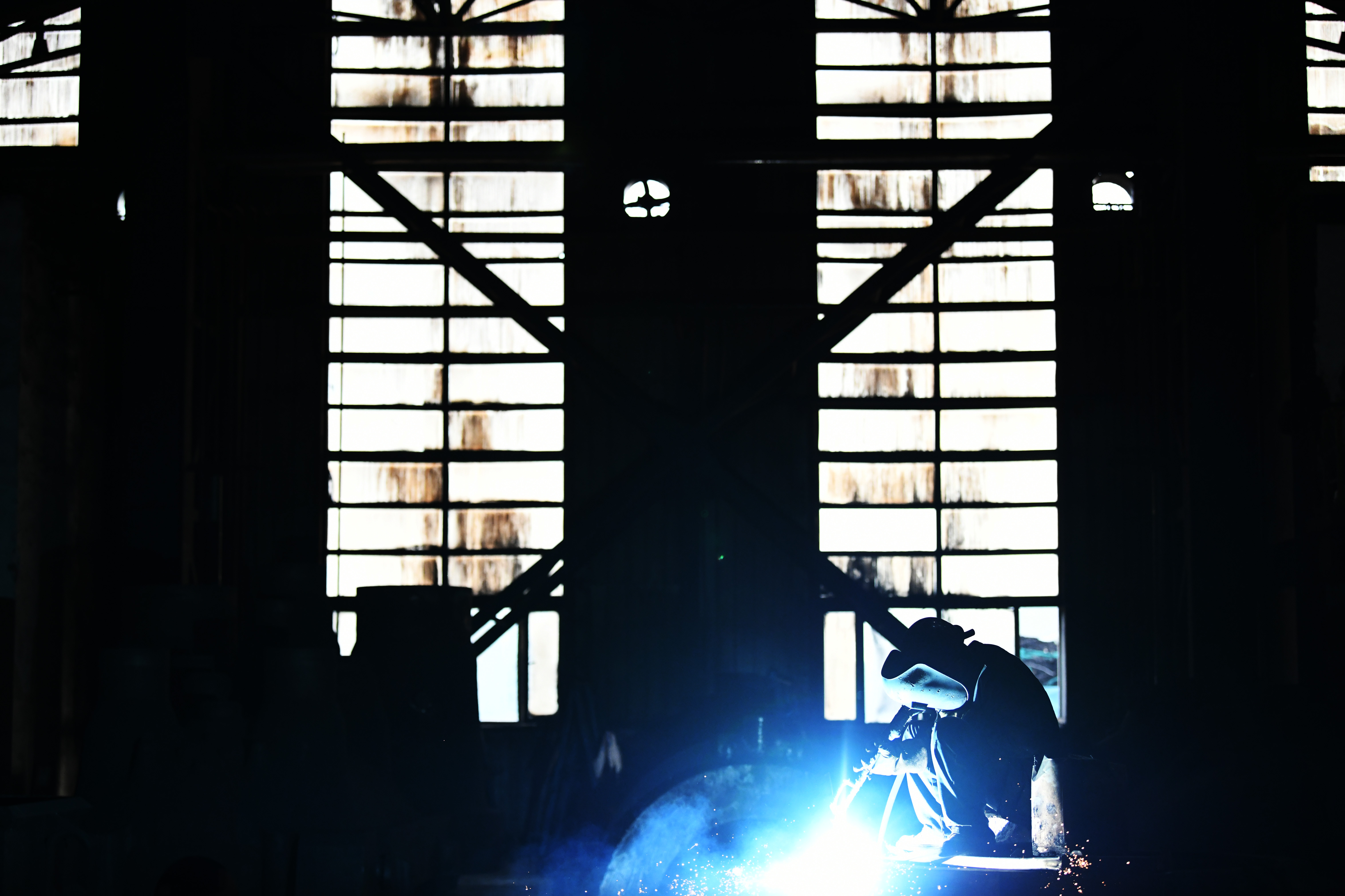 A worker welds components at a factory of China First Heavy Industries, Aug. 29, 2019. (Xinhua/Wang Jianwei)