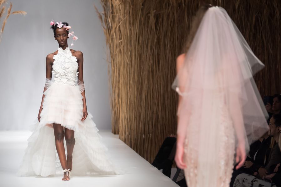 Models present creations of Hungarian fashion designer Nora Sarman during a fashion show at the Marie Claire Fashion Days in Budapest, Hungary. (Photo by Attila Volgyi/Xinhua)
