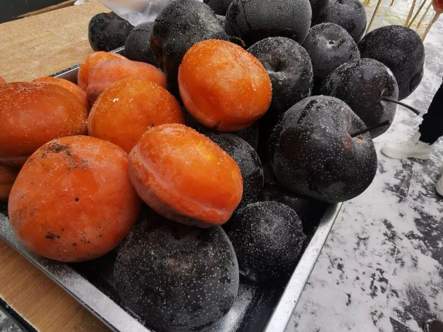 Frozen fruit, like pears and persimmons, are sold across the city. Photo by Zhang Linglin