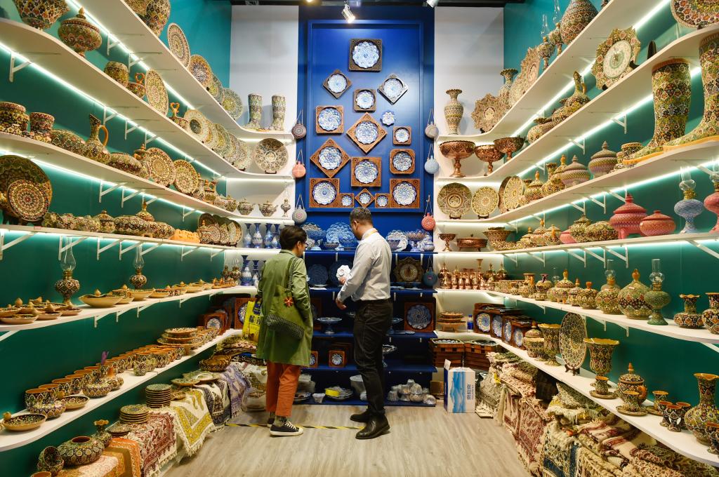这是11月5日在第八届进博会消费品展区拍摄的来自伊朗的陶瓷制品。