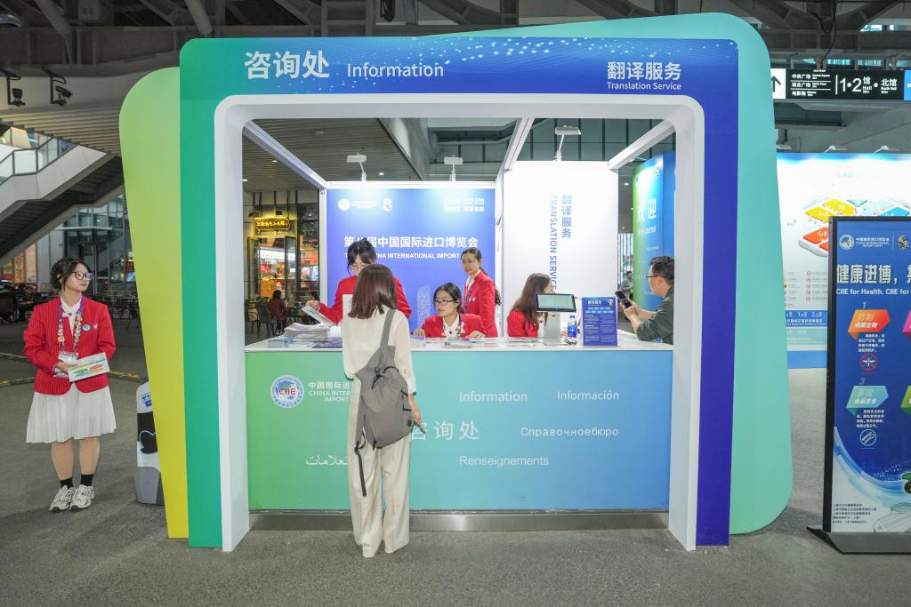 11月5日,志愿者在咨询处为参会人员提供服务。