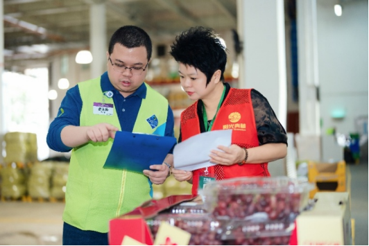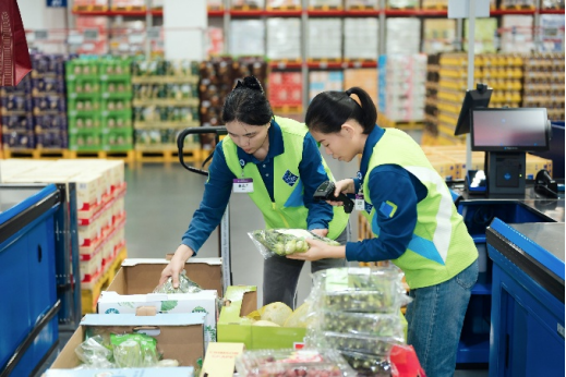 在全国约100家山姆、沃尔玛门店里,员工每天会对食物品质进行检查:对于临近保质期但仍在安全食用期内,且包装和外观检查合格的部分预包装食品,比如米面粮油及其他零副食品等;或者只是外观上出现轻微瑕疵、在正常销售中不再优先陈列的果蔬,都被挑出来放进洁净的周转箱。而那些不符合捐赠品质要求的,则直接进入报损流程,不能与可捐赠的余量食物“混搭”。这些被挑出的捐赠物,被放在固定区域,写进门店的日常操作规范里,和补货、盘点一样,是每天必须完成的“规定动作”。这是链路上的第一重把关——只有安全、合格、仍在保质期内的余量食物才有资格进入捐赠名单。
