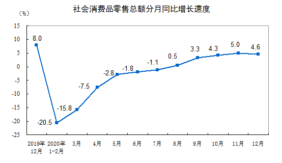 國家統計局:2020年12月份社會消費品零售總額增長4.6%