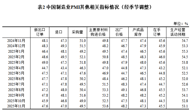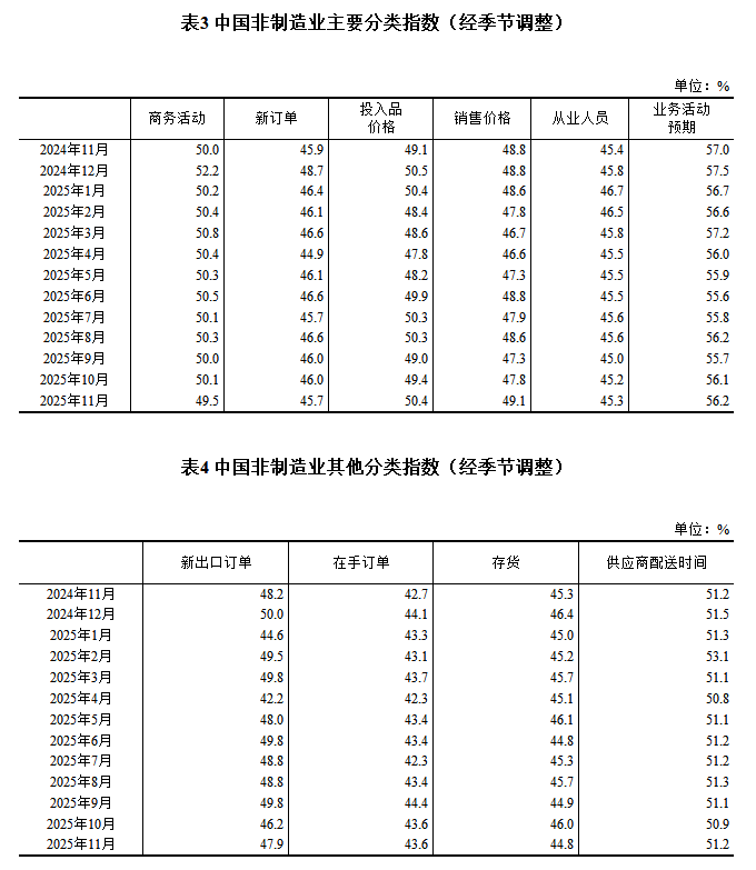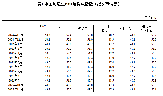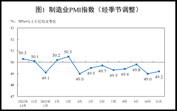 2025年11月中国采购经理指数运行情况