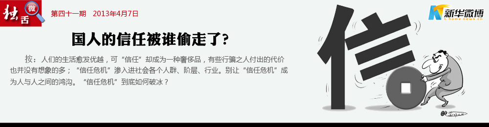 當“造假”成為“理所當然” 誰偷走了中國人的信任?一個段子說是在如今中國,賣包子的不吃自己做的包子,種菜不吃自己種的菜,賣藥的不敢吃自己生產的藥,賣奶粉則從不吃國產的奶粉。當造假作假、坑蒙拐騙成一種風氣,甚至成一種理所當然時尚,每個人能做的就只剩兩件事了:一個是只信自己,另一個是絕不信別人。