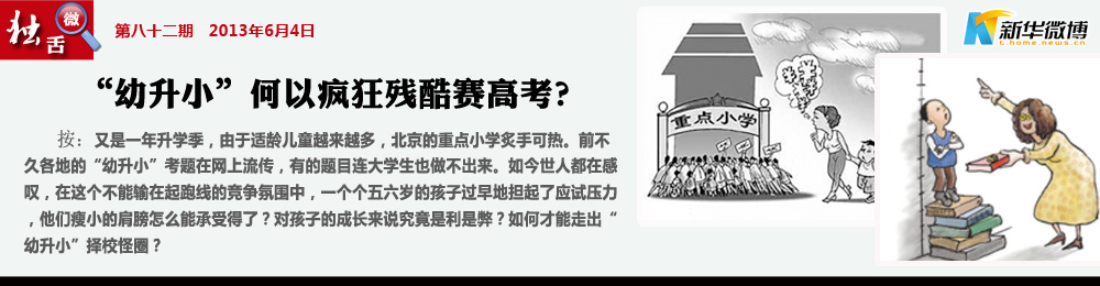 【孩子精神分裂】 A校搞面談,B??紛W數(shù),C??粗夭潘?,D校要英語會(huì)話,孩子們考前往往要精神分裂好長(zhǎng)一段時(shí)間,學(xué)生進(jìn)一次校門就得背一次考試圣經(jīng)。