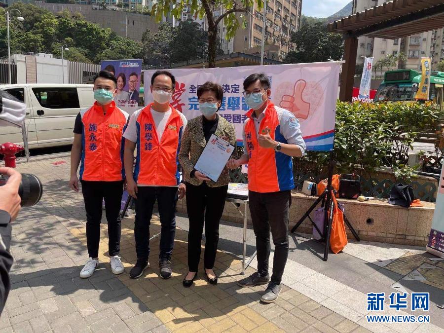 新華社香港3月15日電(記者劉明洋)連日來,“香港各界撐全國人大決定完善選舉制度連線”在全港各區擺設街站,收集市民支持全國人大決定的簽名。香港特區行政長官林鄭月娥15日前往位于港鐵堅尼地城站的街站簽名,支持落實“愛國者治港”原則,并為街站工作人員打氣加油。