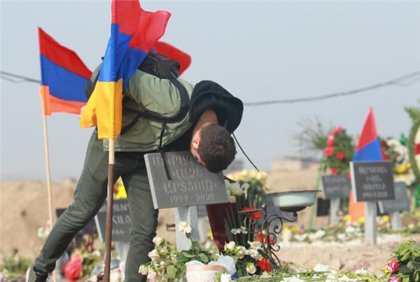 ????資料圖片:在亞美尼亞首都埃里溫一處公墓,當地民眾安葬在納卡沖突中陣亡的士兵