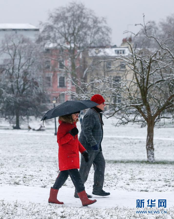 1月24日,人們在英國倫敦的雪地上行走。新華社記者韓巖攝