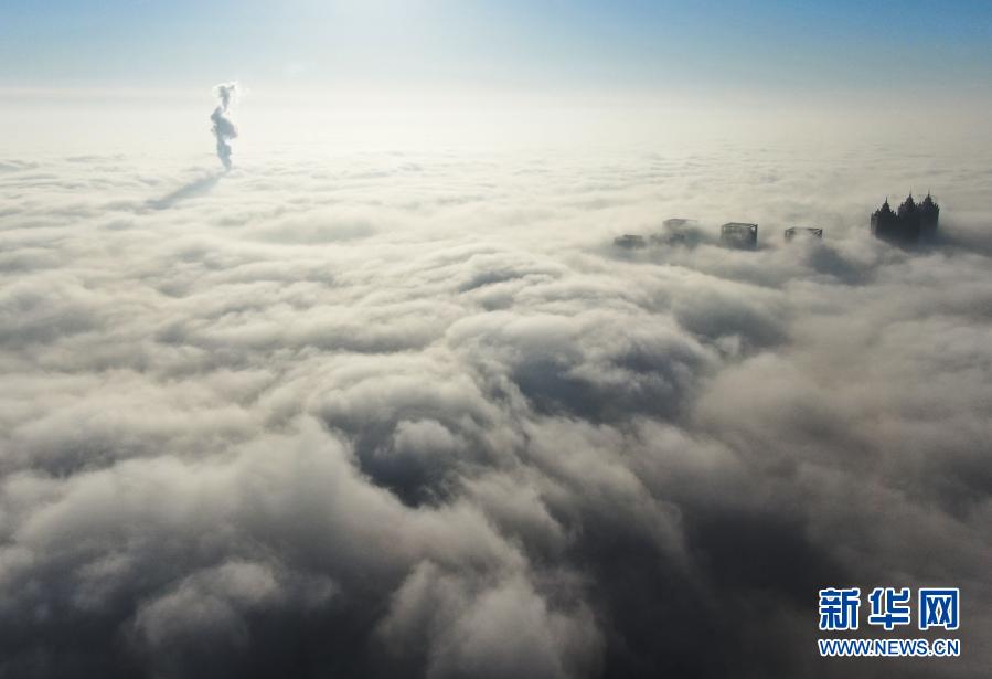 這是1月26日在沈陽市渾南區拍攝的市內霧景(無人機照片)。新華社記者 楊青 攝