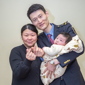 付寶印是中國鐵路成都局集團有限公司重慶客運段的一名列車長。今年是付寶印工作以后的第7個春運,也是他無法和遠在北方的家人一起度過的第7個春節(jié)。剛剛喜添小寶寶的他本計劃今年過年帶著老婆孩子回吉林老家看望父母,為了響應(yīng)就地過年的號召,他決定留在重慶本地過年,堅守春運崗位。工作之余,付寶印也通過視頻通話,和老家的親人“相聚”。