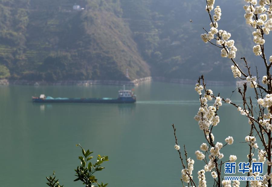 2月14日,長江湖北省秭歸縣江段岸邊山花開放。新華社發(王輝富 攝)