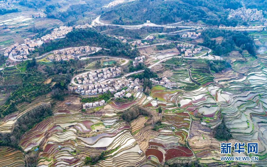 這是哈尼梯田景觀(2月24日攝,無人機照片)。