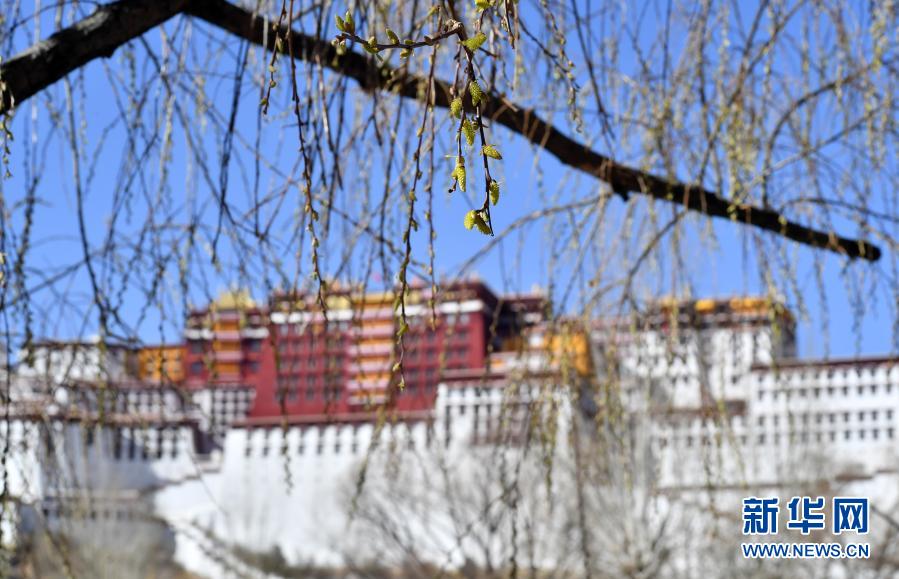 這是布達拉宮腳下發芽的柳樹(3月3日攝)。新華社記者 覺果 攝