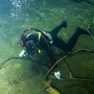 3月15日,在長江水下40多米的白鶴梁題刻無壓容器罩內(nèi),潛水員在進(jìn)行清理作業(yè)。