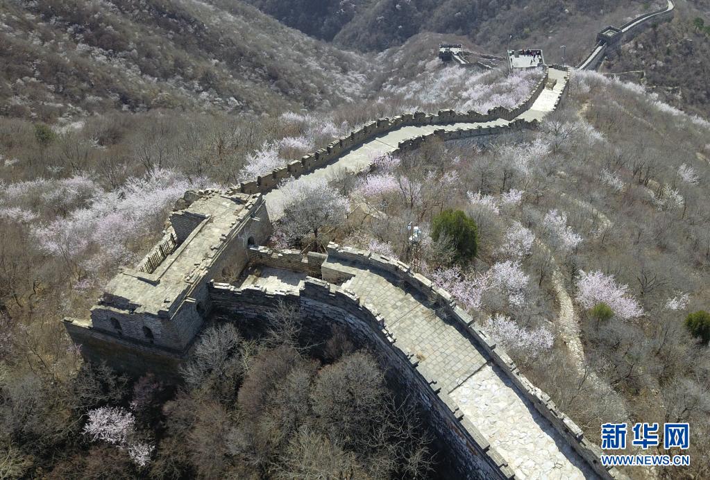 近日,隨著氣溫逐步回升,北京慕田峪長城山花爛漫,春意漸濃。