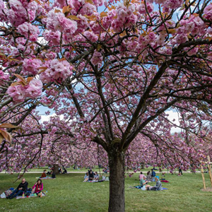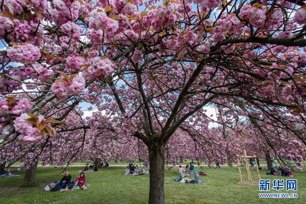 4月20日,人們?cè)诜▏屠杞嫉膰t公園欣賞櫻花。