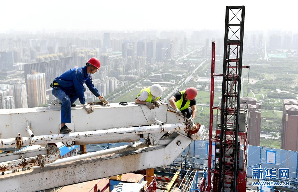 5月1日,在陜西西安未央區一項目施工現場,中建七局四公司的工作人員在作業。