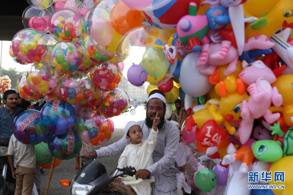 5月13日,人們?cè)诎突固鼓喜砍鞘锌ɡ鎽c祝開齋節(jié)。新華社發(fā)