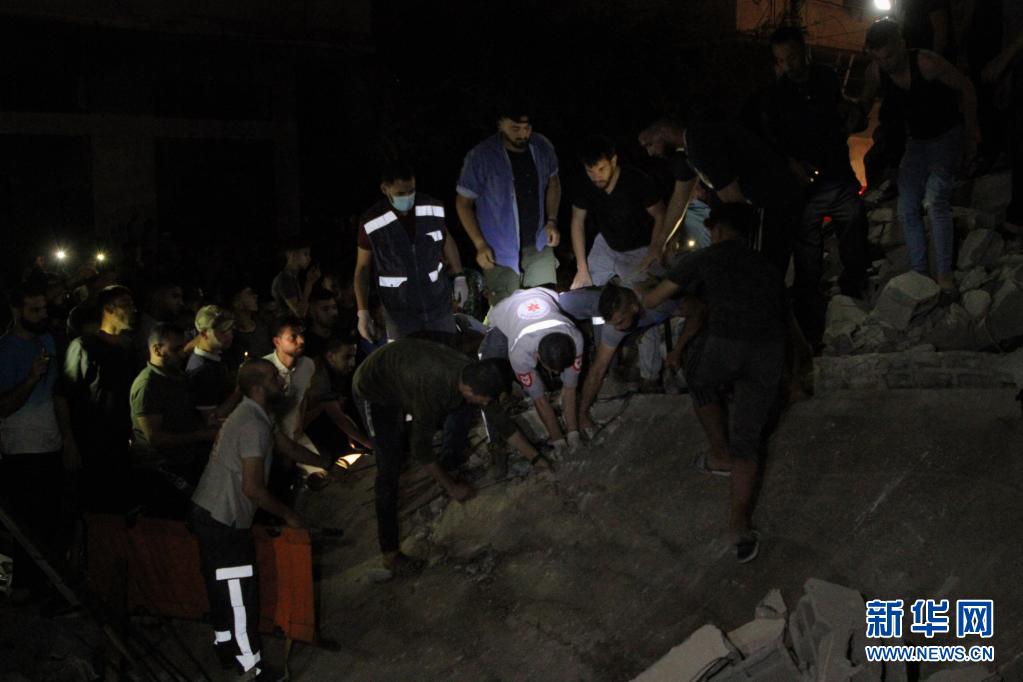 5月15日,救援人員在加沙城的空襲廢墟中搜救。