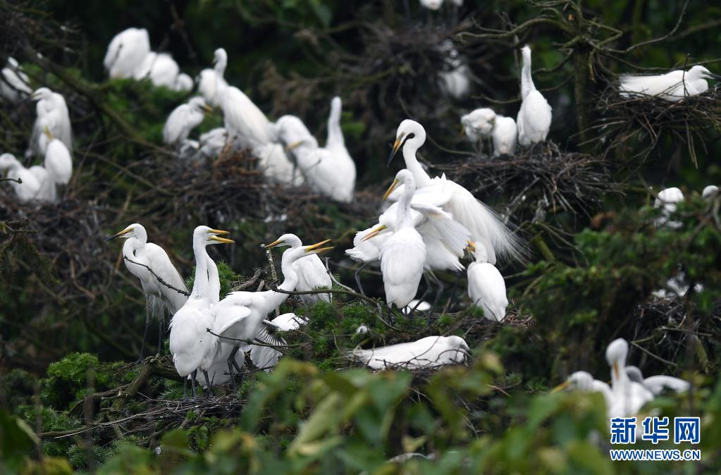 近期,在位于鄱陽湖畔的江西省南昌市新建區象山森林公園內,已安家筑巢的鷺鳥進入孵化哺育旺季。象山森林公園有著“鷺鳥王國”的美譽,每年都會吸引白鷺、蒼鷺、夜鷺等種類的鷺鳥飛抵棲息和繁衍后代。