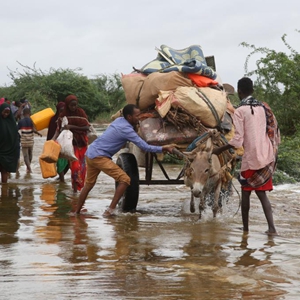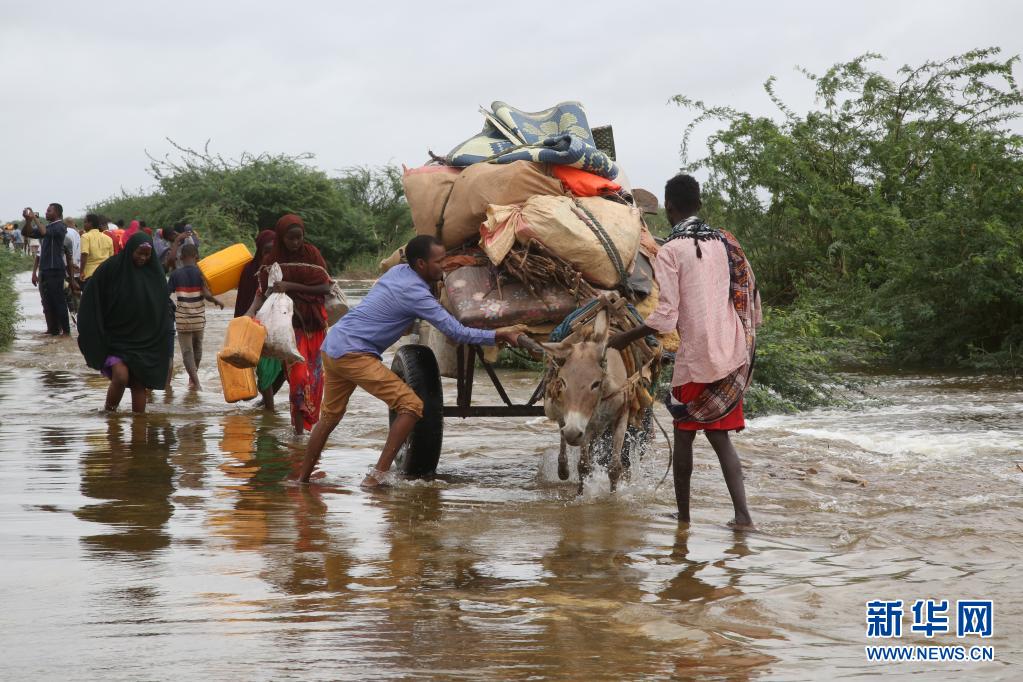 強降雨導致索馬里多地洪水泛濫。新華社發(哈桑·巴希攝)