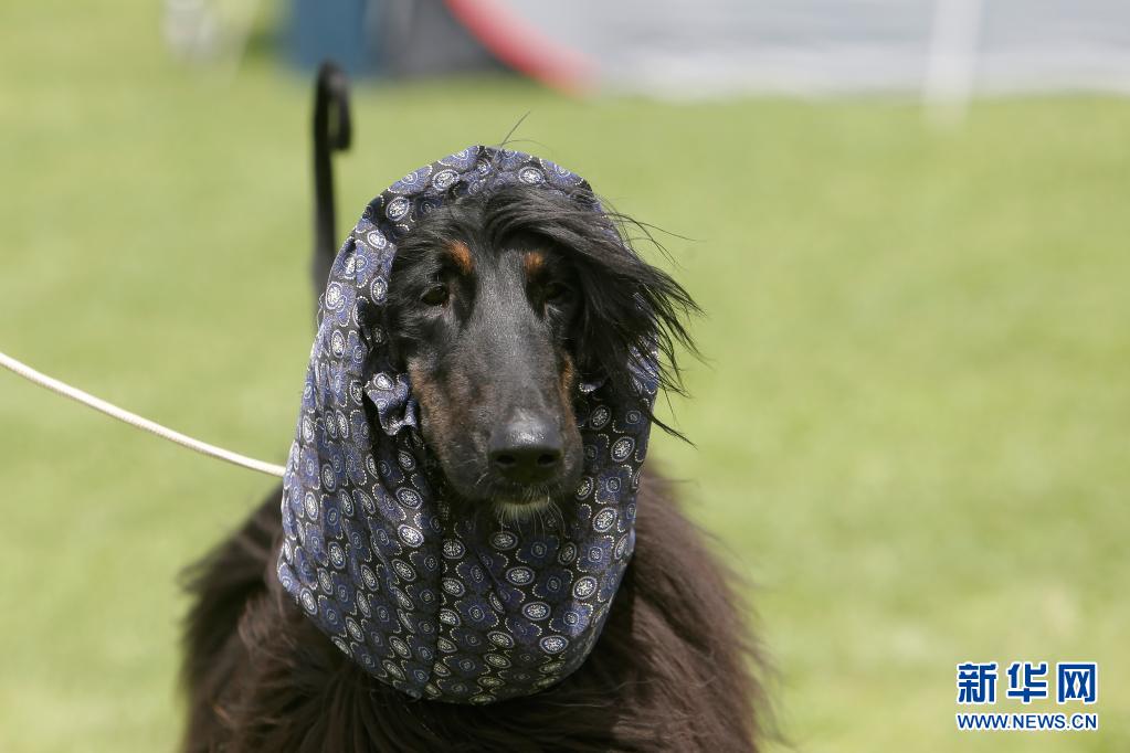 5月23日,一條阿富汗獵犬在羅馬尼亞首都布加勒斯特參加選美比賽。新華社發(克里斯泰爾攝)