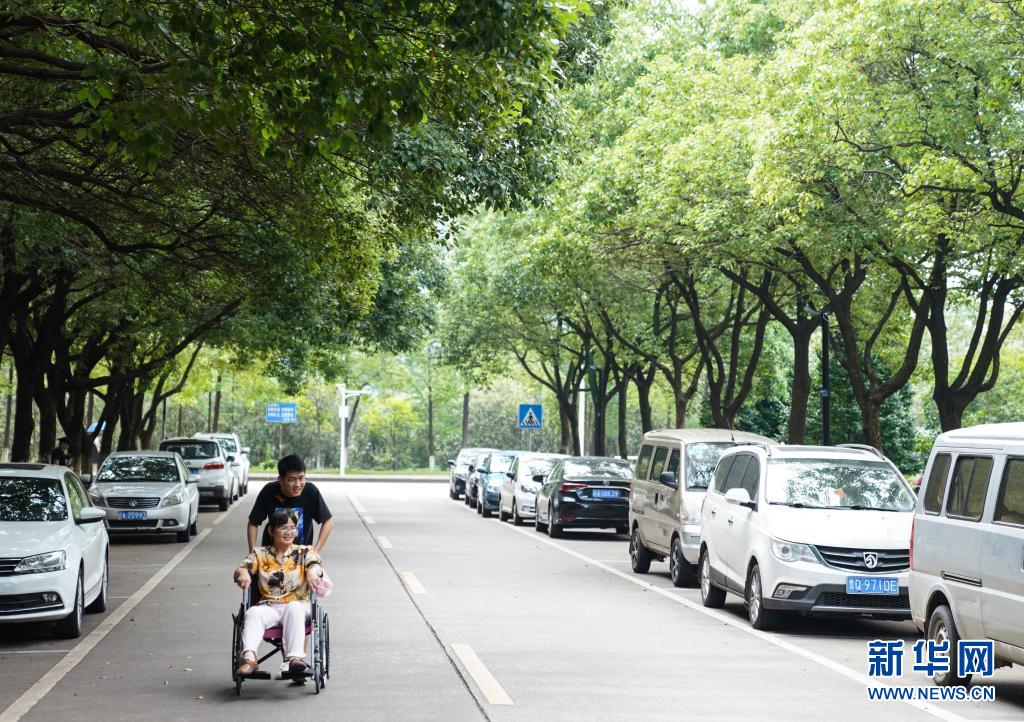 6月1日,趙建軍利用課余時間帶著母親在校園內散心。新華社記者胡晨歡攝